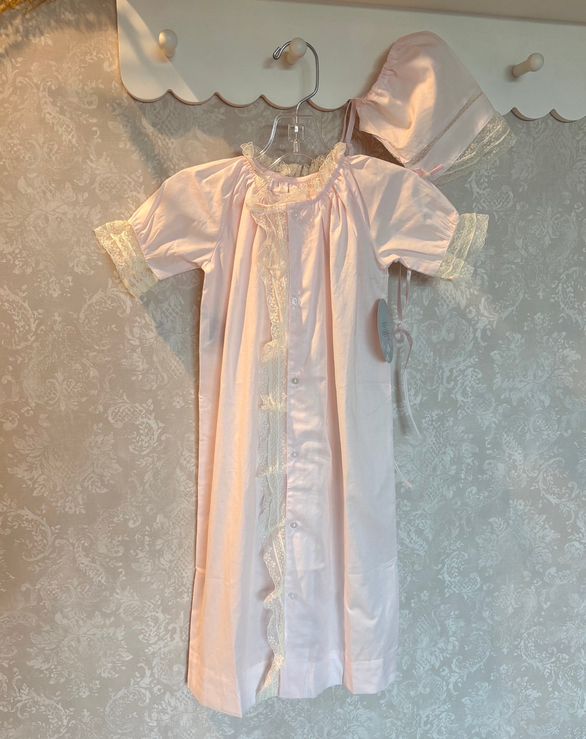 Introduce your little one to timeless elegance with this Classic Heirloom Finn Daygown in Pink. Crafted with delicate lace detailing and graceful ribbon accents, this sophisticated piece transcends seasons and trends. Designed to become a cherished family treasure, the soft pink hue and refined construction make it perfect for special occasions or everyday moments worth savoring. A versatile addition to any nursery wardrobe that celebrates understated beauty and enduring style.