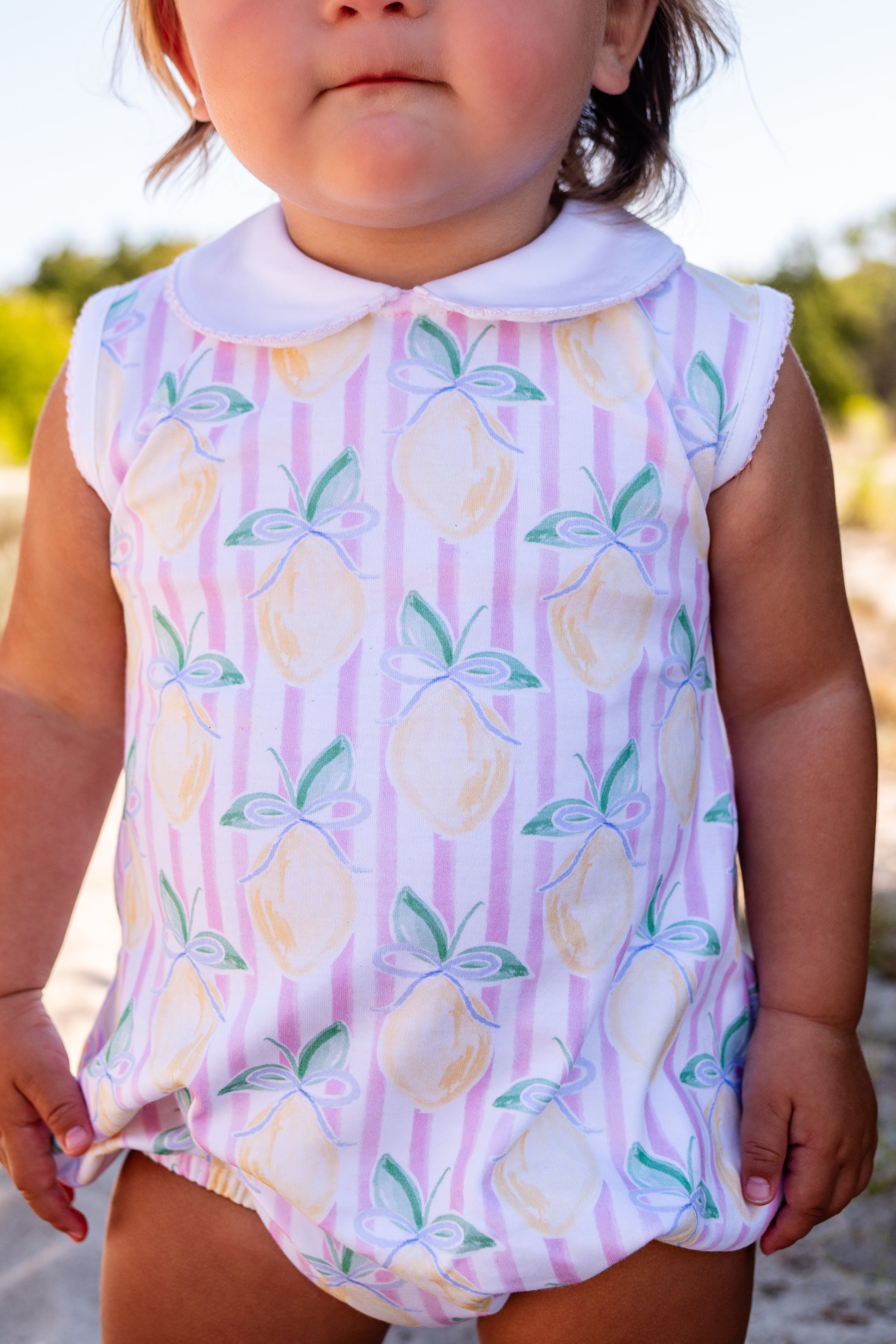 Refreshing pink lemonade meets premium comfort in this classic spring essential. Crafted from luxuriously soft Pima cotton, this bubble features a timeless design perfect for the season. The breathable fabric keeps you cool while the gentle pink hue adds a cheerful touch to any wardrobe! Match big sister in the Pink Lemonade Sundress!